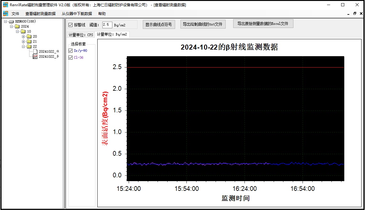 3、显示单位:cpm、cps 、Bq 、Bq/cm2